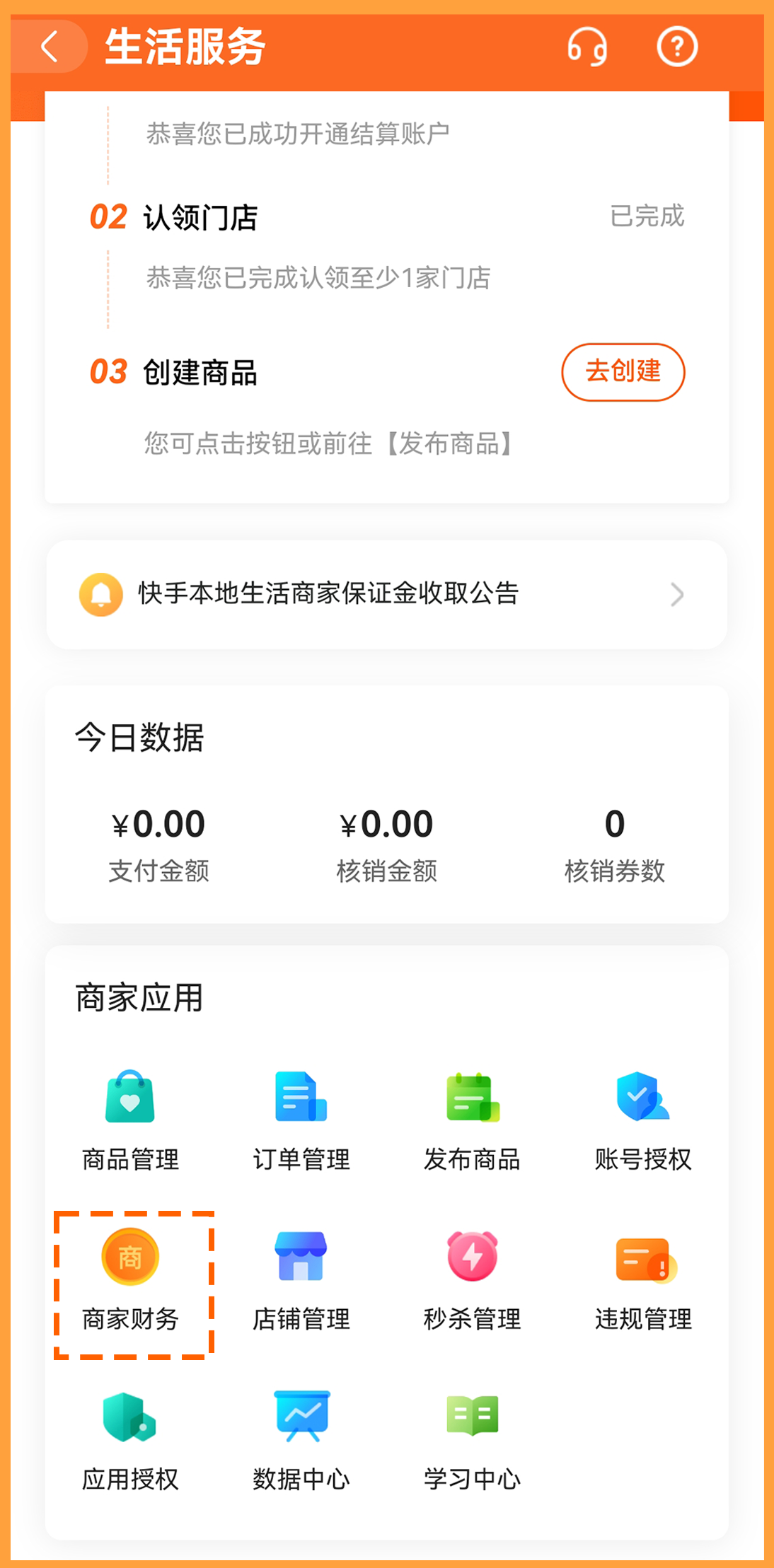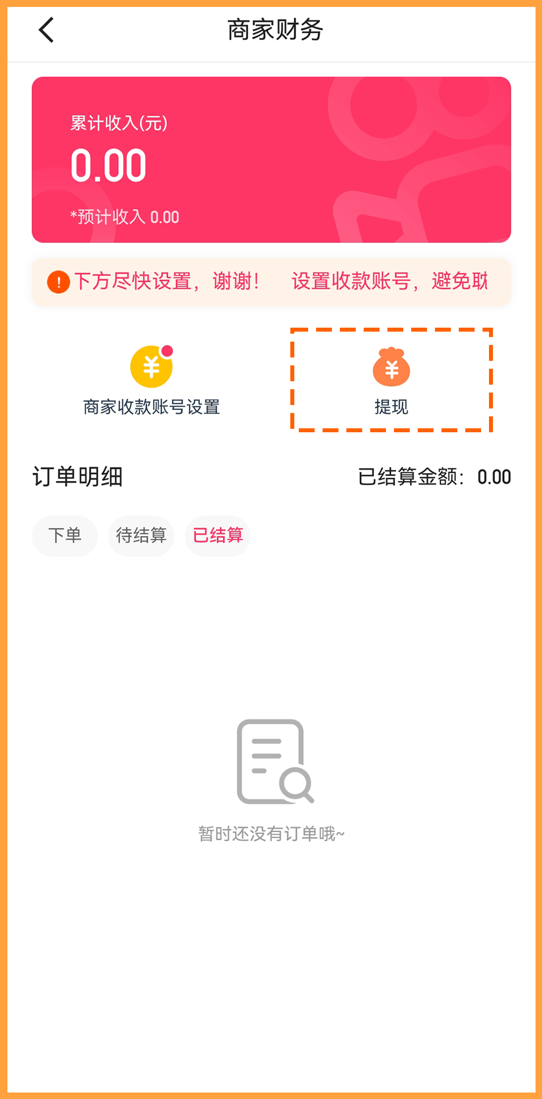 商家可进入APP版【商家后台】,点击「商家财务」查看钱包下的余额。