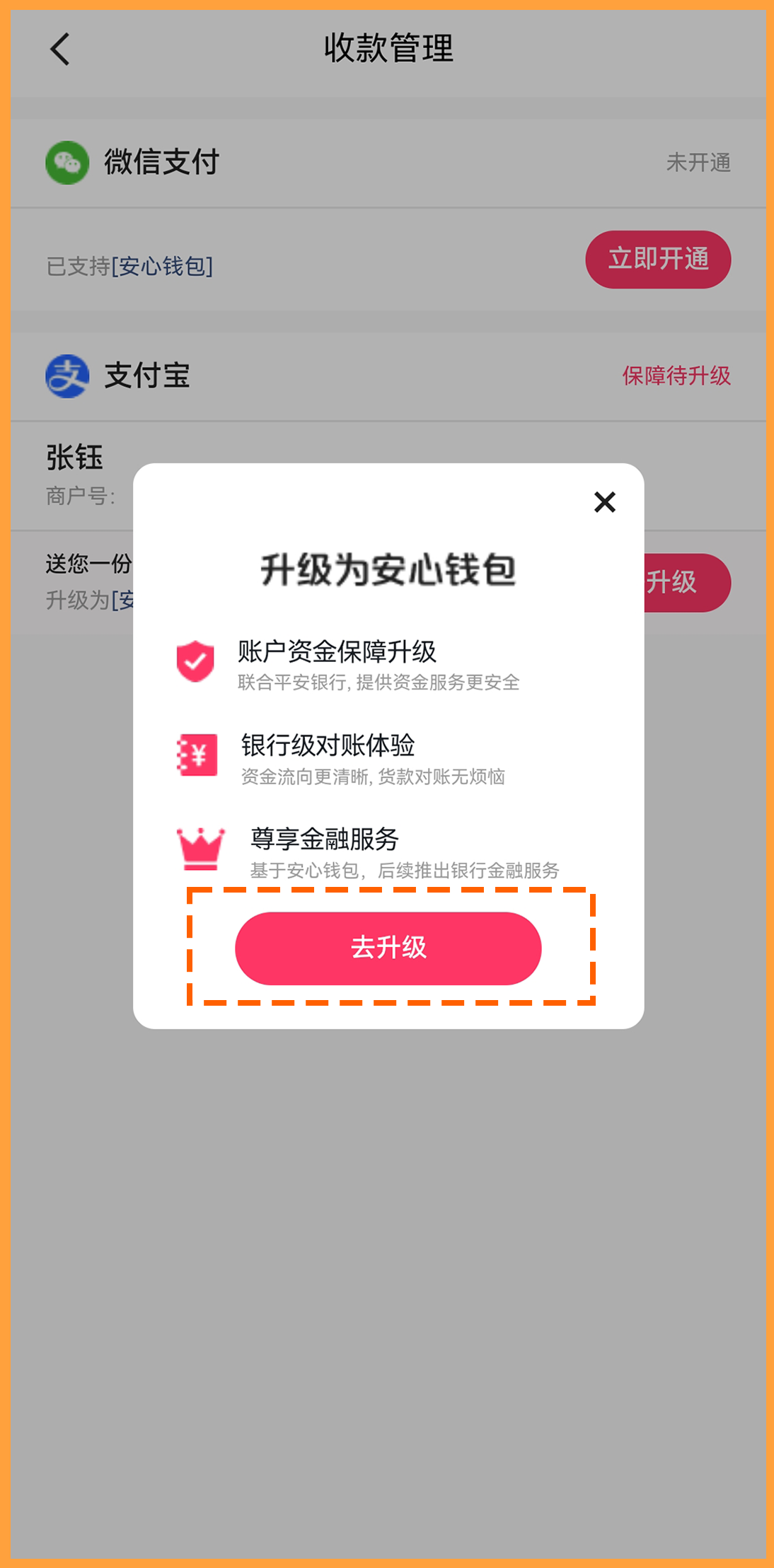 进入APP商家后台,点击【商家财务】-【商家收款账号设置】-【去升级】进行相关资料上传及银行账户绑定。