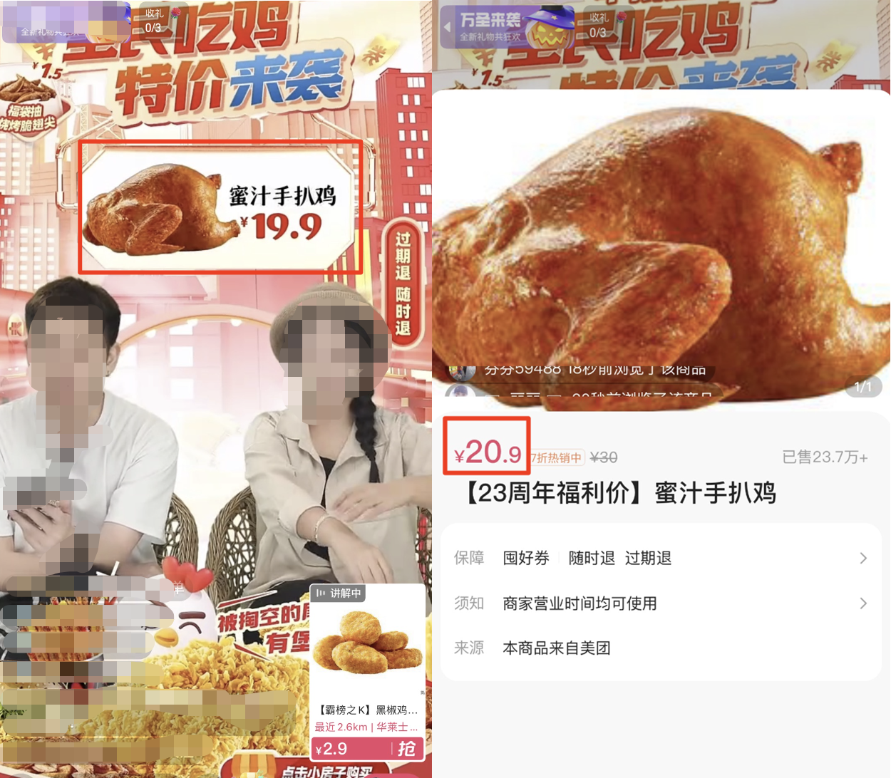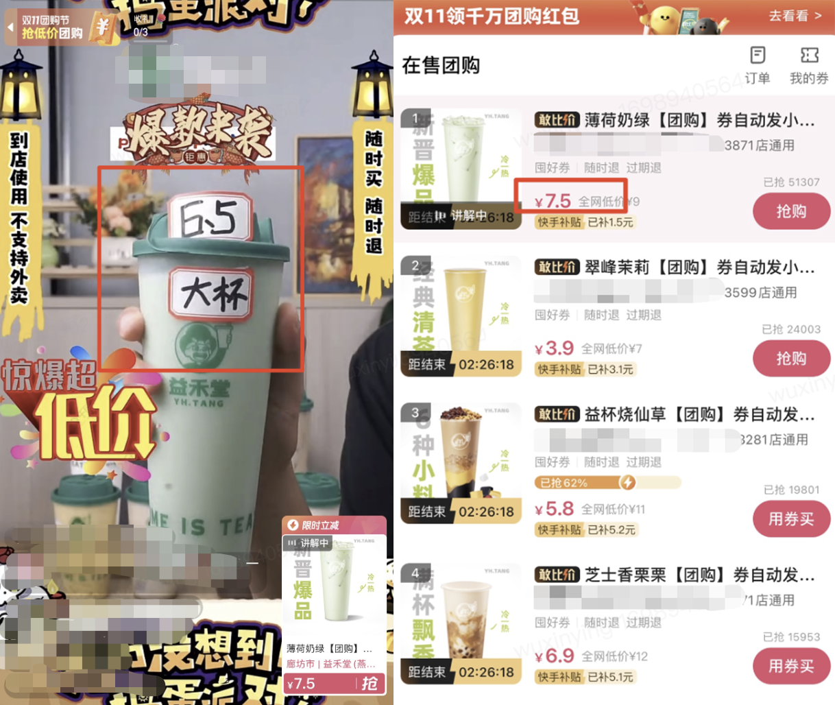 案例四:直播间怼屏幕展示团购列表页/商品详情页宣传不一致