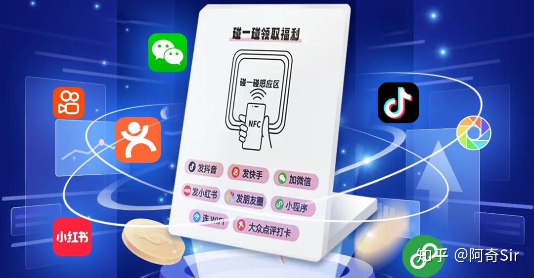 通过手机轻触连接,顾客可一键发布抖音视频、快手、小红书、朋友圈等,还能一键添加好友、连接WiFi、撰写点评、加入社群、购买团购等。帮助商家实现全平台营销,同时提升品牌知名度。